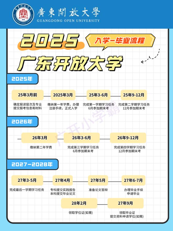 开放大学每年有春季和秋季两次入学机会。以广东开放大学为例,秋季报名一般在6月前完成,考生需提前关注学习中心的报名通知。