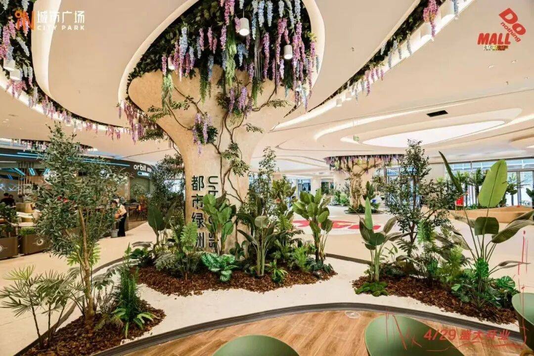 在场景呈现上,秉持歌林商业生态绿色的造景理念,新生探索自然峡谷风貌,把一棵树搬进商场里,纵跨3层、高达17M。层叠的绿植向上,绿意向下纵深,形成一派自然秘境。以自然的力量,去实现对未来城市空间和商业的新想象。
