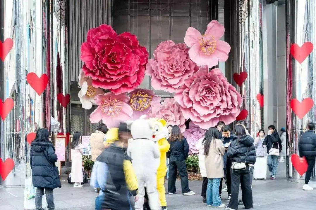 “我们希望打破项目与城市界面的模糊感,让市民一进入区域就能感受到独特的商业氛围。”设计团队系统性地将花卉符号植入入口装置、动态流线、地面导视与墙面艺术,构建出“一步一景、步步生花”的沉浸式美学场域。这不仅强化了空间的边界感与仪式感,更通过精心规划的互动打卡点与休憩座椅,让商业空间升华为市民可参与、可停留的“城市精神自留地”。