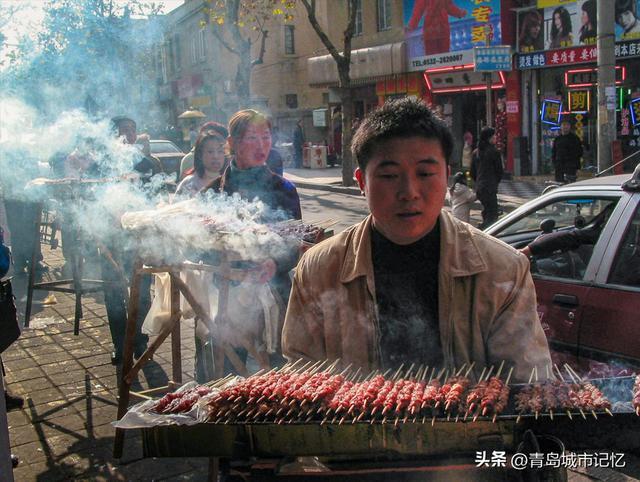 改革开放后,大约85年的春天,几个新疆人在李村路青岛电影院的对面支起了烤羊肉的铁盒子,没想到很快就生意红火起来,穿在自行车辐条上那小小的羊肉串,吸引了诸多市民前来品尝。那时,平度路和平度支路口、博山路与四方路交界、天德塘旁边,还有不远处曲阜路的青岛饭店旁、海泊路震泰旁边陆续出现的新疆羊肉串,也是青岛最早的路边烧烤。
